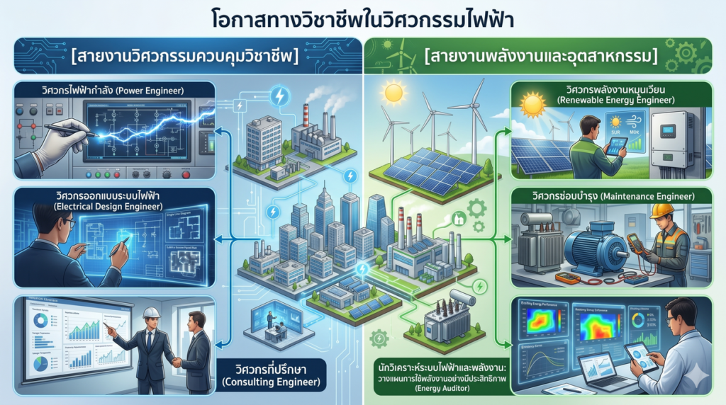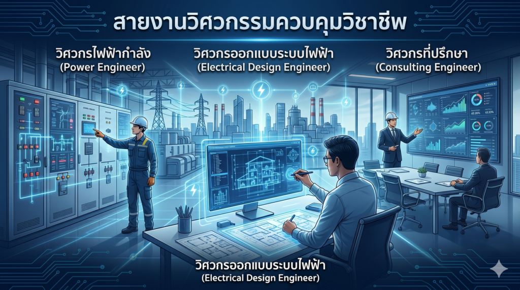 วิศวกรไฟฟ้ากำลัง (Power Engineer): ออกแบบ ควบคุม และวางระบบไฟฟ้าในอาคารและโรงงานอุตสาหกรรม